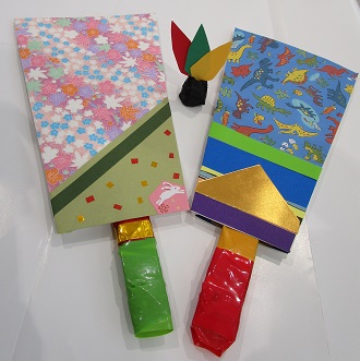 昔から日本にある縁起のいいオモチャ「独楽」と「羽子板」を作りましょう。回り続ける様子が「お金が回る」「物事が円滑に回る」に通じると言われる「独楽まわし」や羽根をつくので「邪気をはね(羽根)除ける」と言ういわれを持つ「羽根つき」をして遊びましょう。